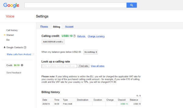When you want to place calls overseas, you'll need to add credit to your account to cover the cost of service. Most of the time however, the charges are minimal and just two cents per minute.